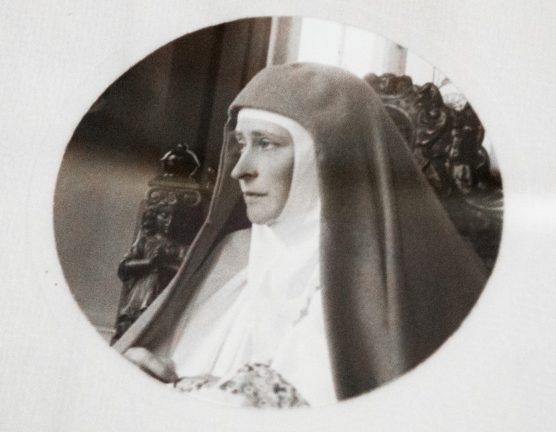 Великая княгиня, до замужества принцесса Гессен-Дармштадтская, воспитывалась в лютеранской семье, преподавшей маленькой Элле первые примеры сострадания к нуждающимся. Обвенчавшись с Великим князем Сергеем Александровичем Романовым и переехав в Россию, Елисавета Феодоровна продолжала являть собой образец аскетизма и добродетели. После того, как ее супруг погиб в 1905 году от бомбы террориста-революционера, Елисавета Феодоровна посвятила жизнь Господу, создав в Москве Марфо-Мариинскую обитель труда, милосердия и молитвы.