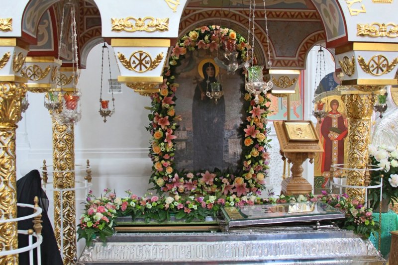 По заамвонной молитве архипастыри и сослужащие священнослужители совершили молебен преподобной Евфросинии, игумении Полоцкой.