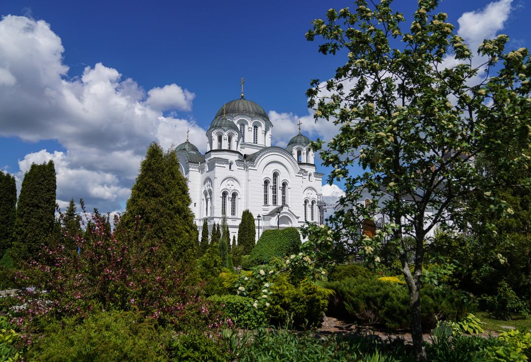 У врат Полоцкого Спасо-Евфросиниевского женского монастыря Святейшего Патриарха встречали настоятельница монастыря игумения Евдокия (Левшук) с сестрами обители, настоятельницы женских монастырей Белорусской Православной Церкви.