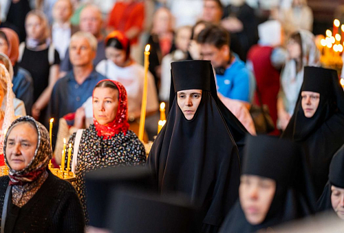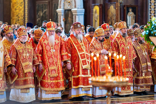 Среди молившихся в Храме Христа Спасителя были председатель Синодального отдела по взаимоотношениям Церкви с обществом и СМИ В.Р. Легойда, священнослужители, монашествующие, игумении и насельницы женских монастырей, многочисленные миряне.