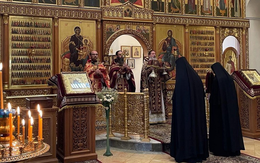 После отпуста Божественной литургии крестный ход духовенства и сестер обители проследовал в пещерный Иоанно-Предтеченский храм, где был совершен краткий молебен.