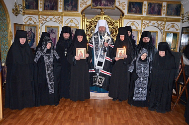 По окончании чина пострига владыка Ириней произнес напутственное слово к новопостриженным и новым послушницам монастыря и поздравил настоятельницу игумению Зосиму (Сварчевскую) с новопостриженными сестрами, пожелал умелого и мудрого руководства и дальнейшего расцвета Святой Обители.