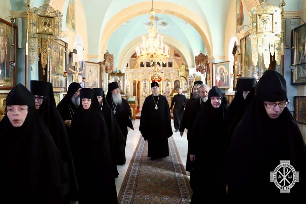 За всенощным бдением согласно монастырской традиции состоялся крестный ход вокруг Казанского храма. Во время четырех остановок были возглашены четыре прошения литии, а перед входом в храм было совершено благословение хлебов, пшеницы, вина и елея.