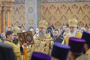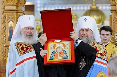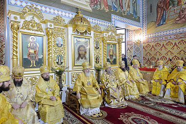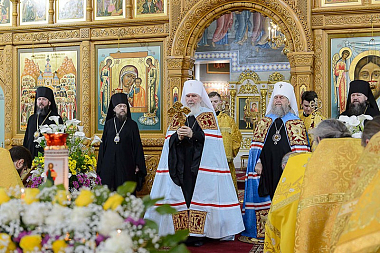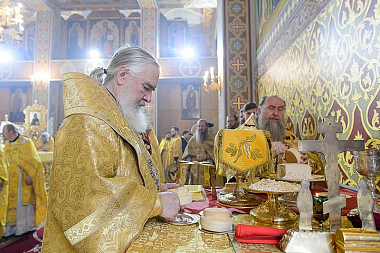 По традиции иерархи, священнослужители, хор и все участники богослужения пропели «Вечную память» старцу-святителю митрополиту Иосифу (Чернову) у его гробницы, расположенной в южном приделе храма.