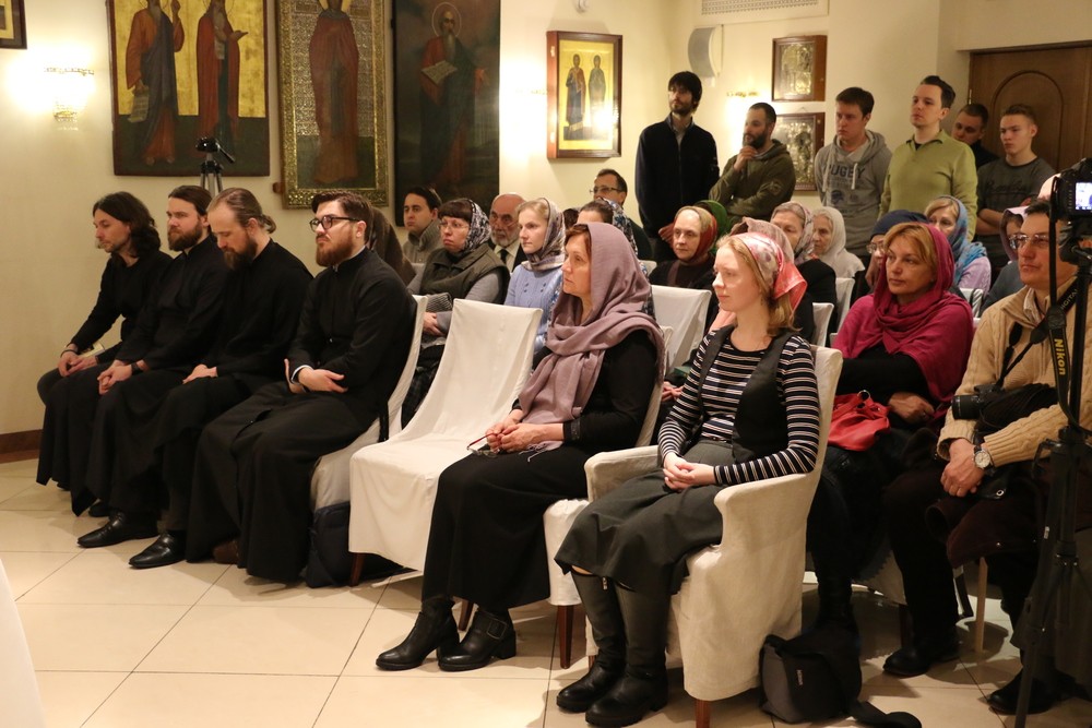 Презентация книги началась не совсем обычно: не только была прочитана молитва «Царю Небесный», но и некоторое время в начале было посвящено Иисусовой молитве. Так собравшиеся смогли чуть поглубже настроиться на разговор об Афоне, где Иисусова молитва освящает и день и ночь, и рукоделие, и дорогу иноков.