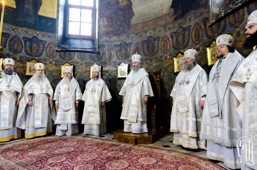 Его Блаженству сослужили наместник Лавры митрополит Вышгородский и Чернобыльский Павел, архиепископ Бучанский Пантелеимон, архиепископ Макаровский Иларий, епископ Гостомельский Тихон, а также братия обители в священном сане.