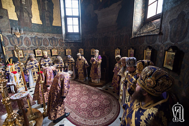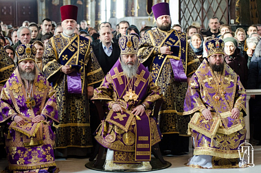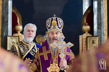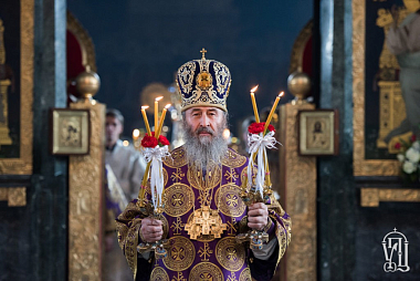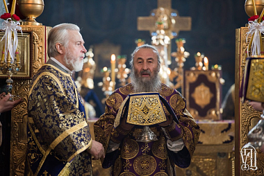 За Литургией Его Блаженству сослужили архиепископ Бучанский Пантелеимон, ректор Киевской духовной академии и семинарии епископ Белогородский Сильвестр и духовенство Лавры и Киевских духовных школ.