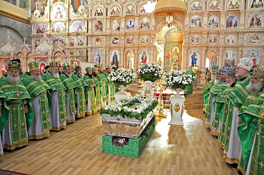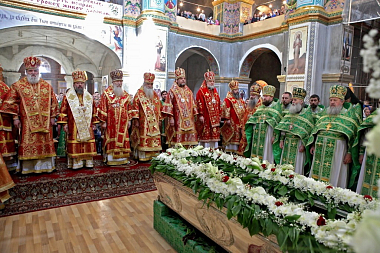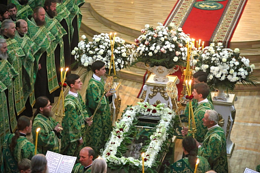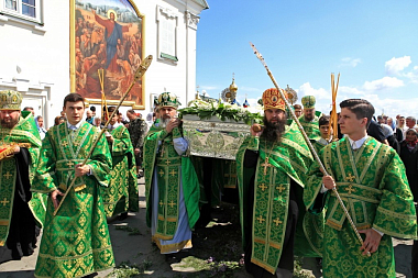 По завершении Литургии состоялся крестный ход с мощами преподобного к Пещерному храму, где был совершен молебен.