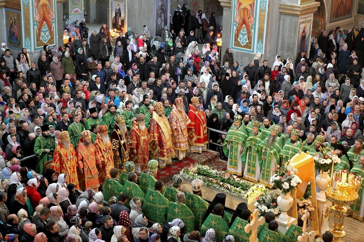 По окончании богослужения раку с мощами святого Амфилохия крестным ходом перенесли в пещерный храм – место их постоянного пребывания. Вместе с иерархами и священнослужителями святыню провожали тысячи верующих – паломников и прихожан.