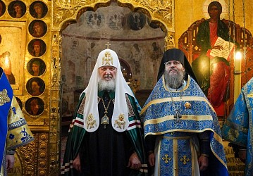 На сугубой ектении были вознесены молитвенные прошения о Святейшем Патриархе Кирилле: