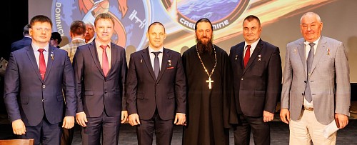 Во время официальной части мероприятия в Доме космонавтов иеромонах Пафнутий обратился с к участникам и гостям с приветственным словом, особо подчеркнув, что всё богослужение великого церковного праздника Вознесения Господа нашего Иисуса Христа напоминает нам о Небе, о том, что человек призван к вечной жизни. «Люди, связанные с космонавтикой, как никто другой знают, что это Небо, Небесное Царство, находится не за облаками и достигается не ракетами и преодолением силы земного притяжения, а преодолением силы притяжения греха, очищением своего сердца от страстей, деланием добродетелей... Нужно стать легким для Царствия Небесного», – сказал отец Пафнутий. Настоятель храма Преображения Господня в Звездном городке вручил членам экипажей памятные подарки: календарь о храме Преображения, календарь о лаврском духовнике – архимандрите Кирилле и вышедшую к 80-летию Победы книгу «Лаврские фронтовики».