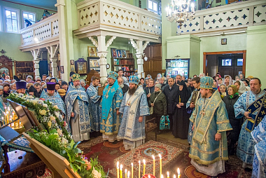 По отпусте Божественной литургии был отслужен молебен, в завершении которого Высокопреосвященнейший митрополит Александр прочел молитву Пресвятой Богородице, а Преосвященнейший епископ Александр прочел молитву прп. Сергию Радонежскому. Затем было провозглашено многолетие.