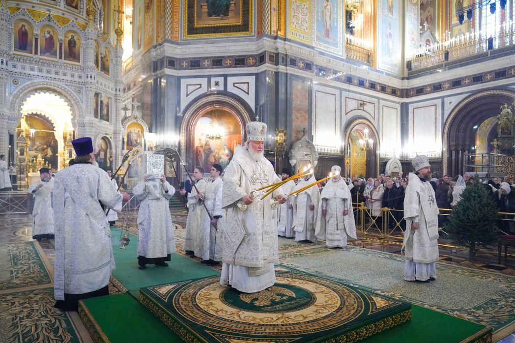 Утром 6 января 2025 года, в навечерие Рождества Христова (Рождественский сочельник), Святейший Патриарх Московский и всея Руси Кирилл совершил Великую вечерню и Божественную литургию святителя Василия Великого в кафедральном соборном Храме Христа Спасителя в Москве.