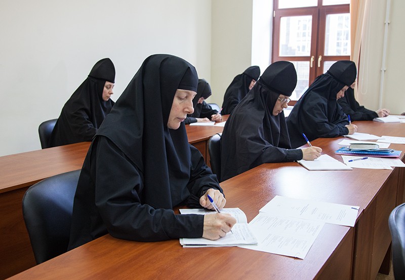 23 апреля 2018 года начались занятия у первой группы из 19 человек – послушниц и монашествующих женских монастырей Саратовской митрополии. Они были зачислены на курсы в марте этого года.