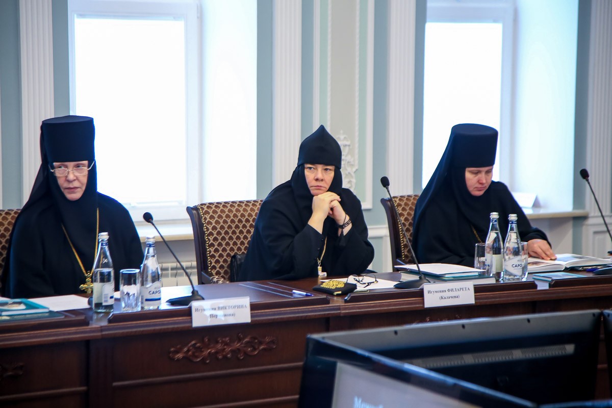 Заместитель председателя Синодального отдела по монастырям и монашеству, настоятельница Зачатьевского ставропигиального женского монастыря Москвы игумения Иулиания (Каледа) сообщила о том, как идет работа над документом «Келейное правило монашествующего», и о промежуточных итогах обсуждения документа «Священнослужение монахов на приходах», которое проходило в рамках мероприятий Синодального отдела по монастырям и монашеству.