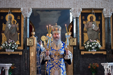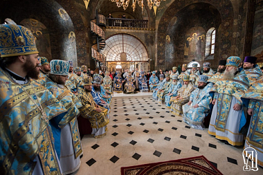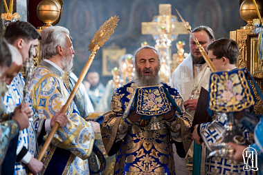 Его Блаженству сослужили наместник Лавры митрополит Вышгородский и Чернобыльский Павел, управляющий делами Украинской Православной Церкви митрополит Бориспольский и Броварской Антоний, митрополит Тульчинский и Брацлавский Ионафан, митрополит Могилев-Подольский и Шаргородский Агапит, архиепископы Бучанский Пантелеимон, Уманский и Звенигородский Пантелеимон, Роменский и Бурынский Иосиф, Северодонецкий и Старобельский Никодим, епископы Бородянский Варсонофий, Фастовский Дамиан, Александрийский и Светловодский Боголеп, Гостомельский Тихон, Барышевский Виктор, Белогородский Сильвестр и духовенство Киево-Печерской обители.