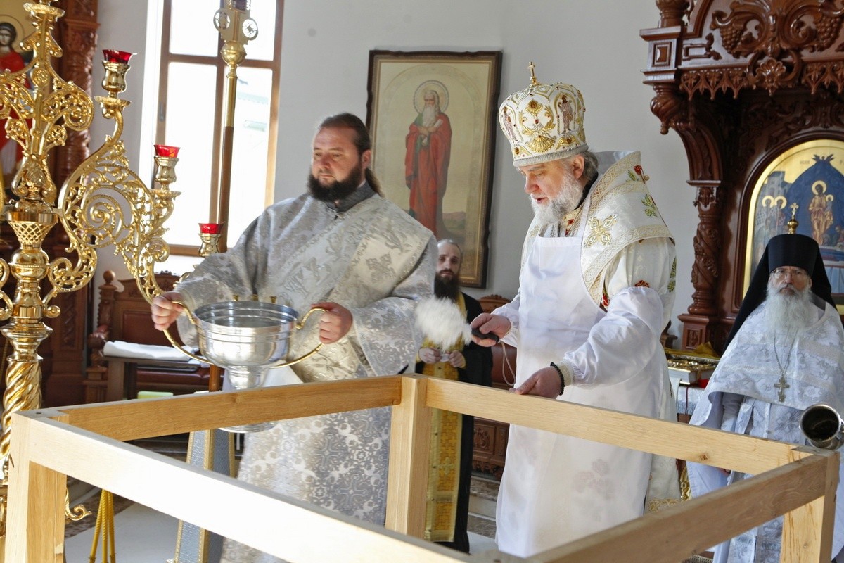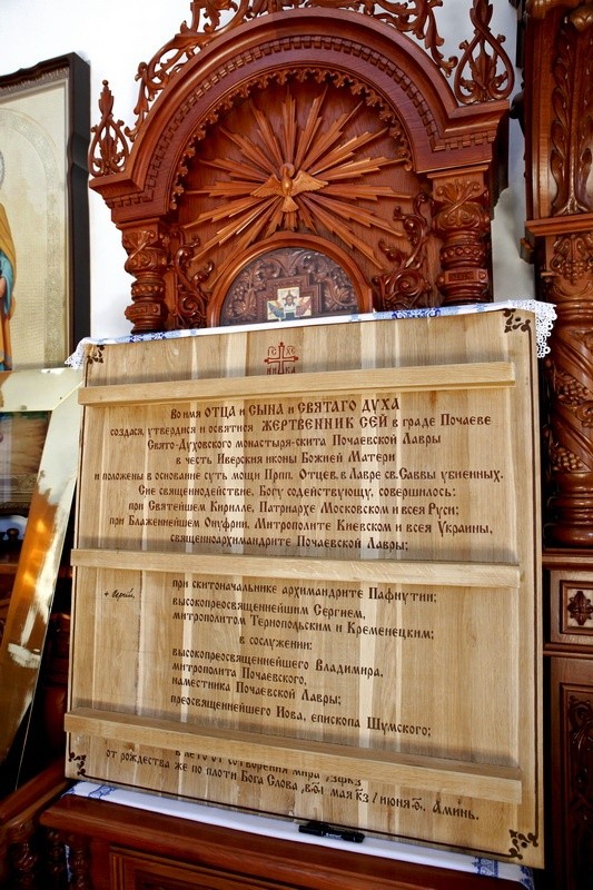 Большой чин освящения храма и праздничную Божественную литургию возглавил митрополит Тернопольский и Кременецкий Сергий в сослужении наместника Свято-Успенской Почаевской лавры митрополита Почаевского Владимира, ректора Почаевской духовной семинарии епископа Шумского Иова, скитоначальника Свято-Духовского скита архимандрита Пафнутия (Целика), братии и гостей обители в священном сане.