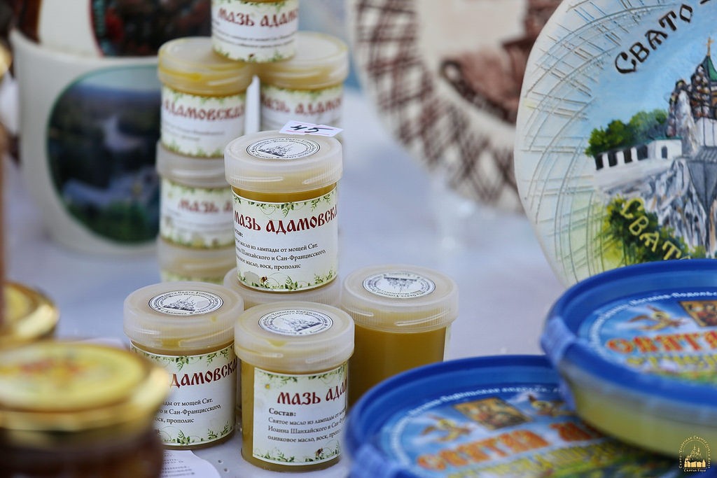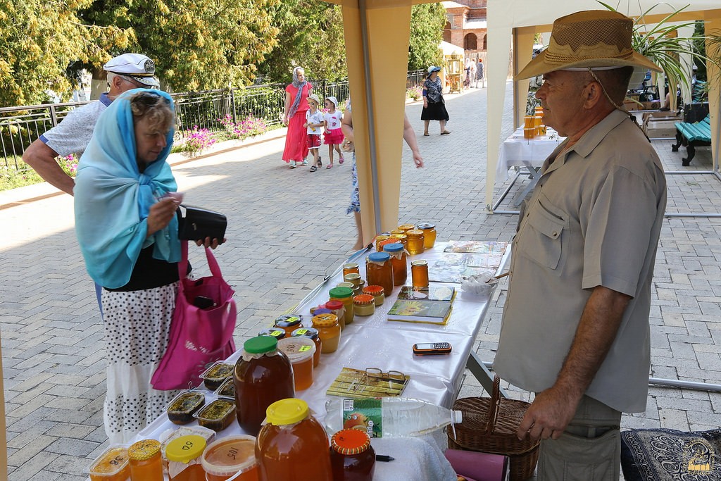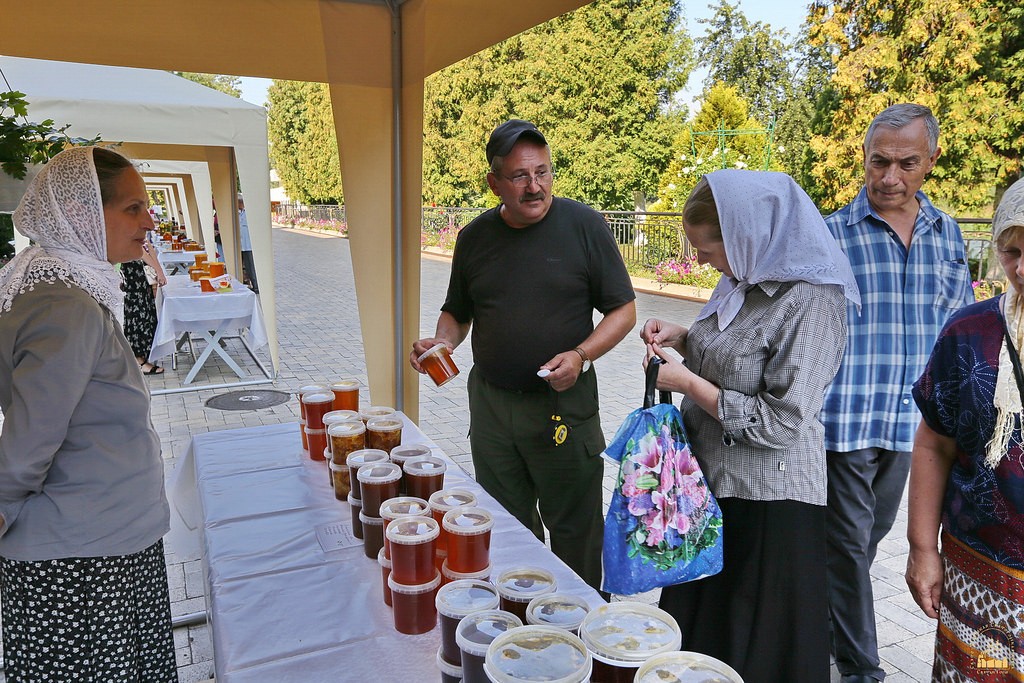 На ярмарке представлена продукция монастырской пасеки Свято-Успенской Святогорской Лавры: множество сортов меда, среди которых большой популярностью пользуется крем-мед (он не содержит в себе крупных кристаллов, но в то же время сохраняет свои вкусовые и лечебные качества).