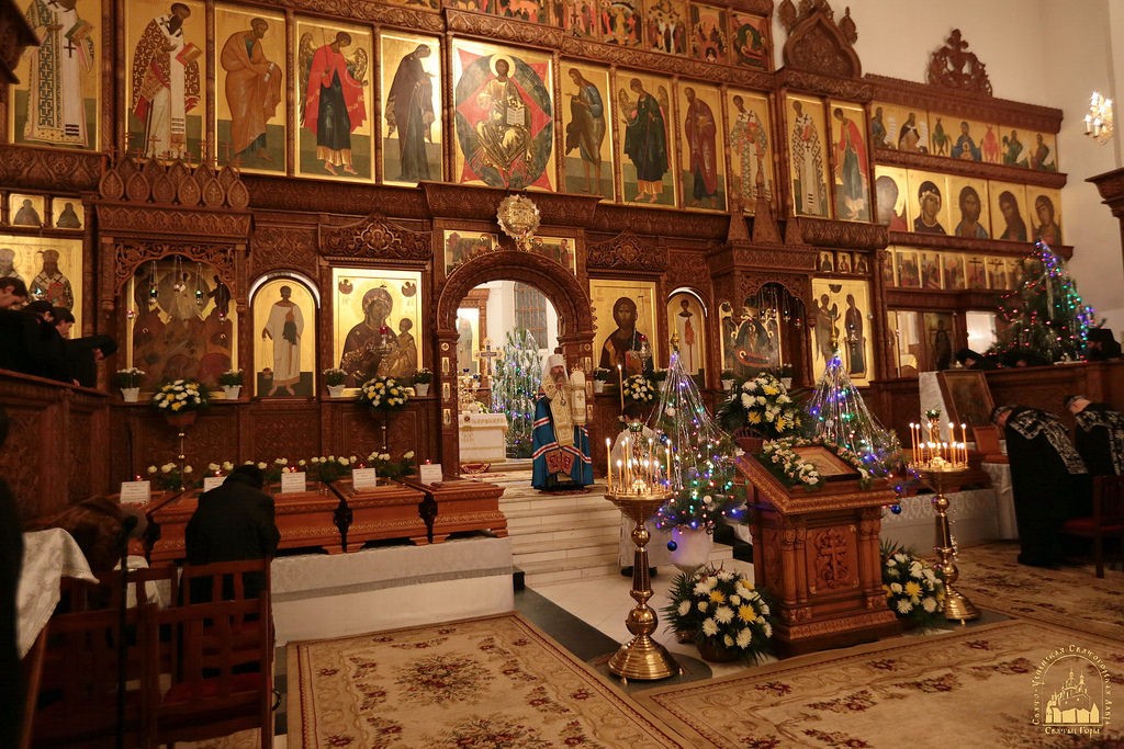 Накануне праздника Рождества Христова в Свято-Успенском соборе для тех, кто пожелал за праздничной службой причаститься Святых Христовых Таин, читался чин исповеди. Затем состоялась встреча Святогорского митрополита и далее – праздничное всенощное бдение, которое закончилось около 4-х часов утра. Далее следовали чтения 3-го и 6-го часов и была отслужена Божественная литургия.