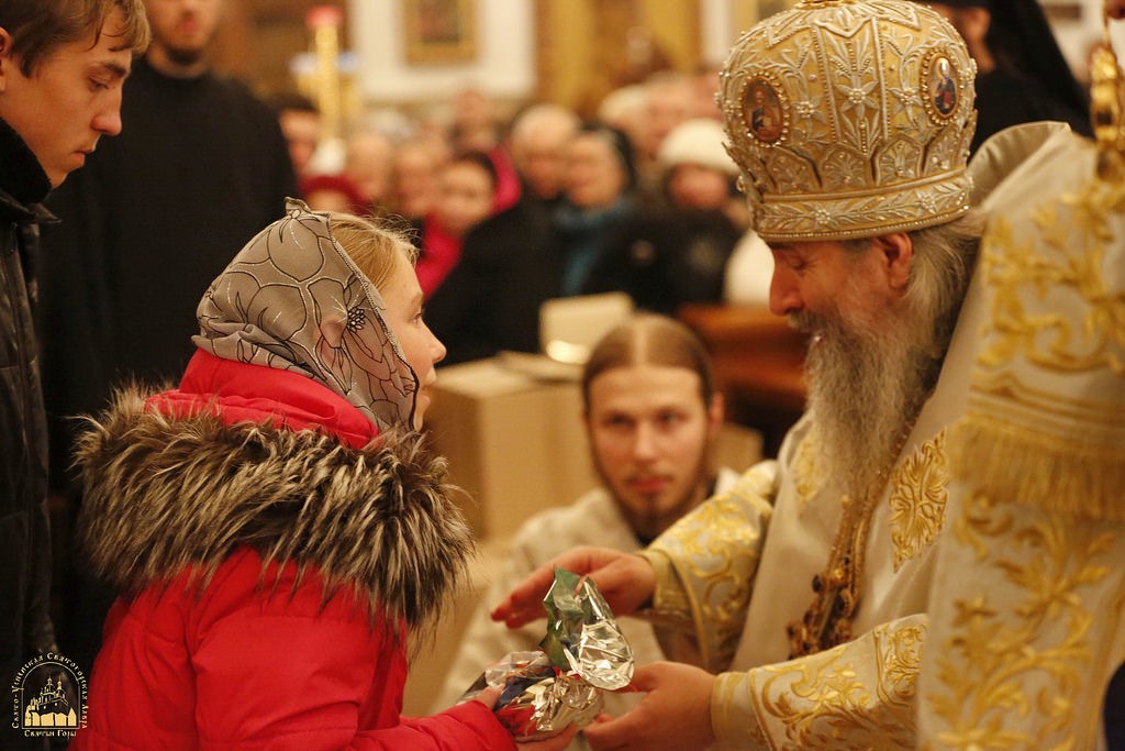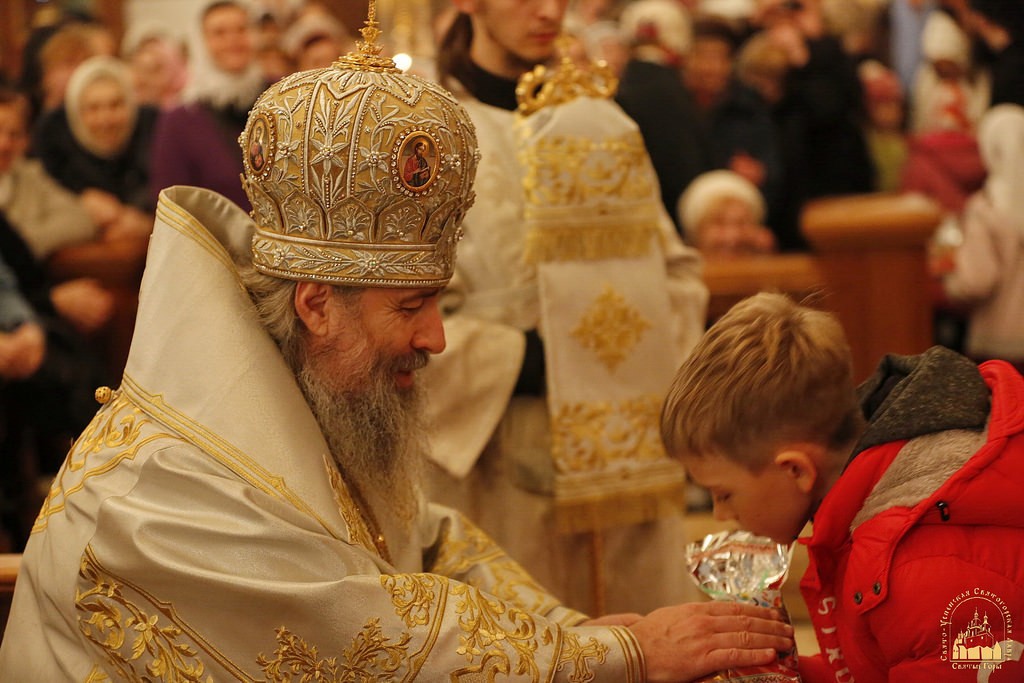 Также в своем поздравительном слове Святогорский митрополит коснулся неизменной темы этих дней – праздничных рождественских колядок. В них, по словам Владыки, народ вложил всю свою любовь и радость к этому святому празднику, к Богомладенцу Спасителю и Пречистой Деве Марии, а также праведному Иосифу Обручнику, пастухам и волхвам, ангелам, которые славили это вселенское событие. Отныне во все дни святок после каждой службы в Святогорской лавре братией будут исполняться колядки, и первые были исполнены после ночной службы в сам праздник Рождества Христова.