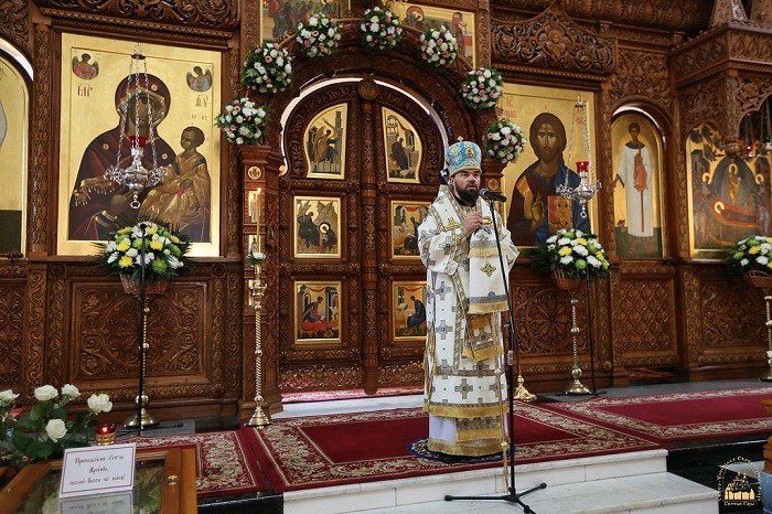 Проповедь произнес митрополит Горловский и Славянский Митрофан. Поздравив всех с праздником, Владыка сказал о грядущем торжестве празднования 25-летия открытия Святогорской обители, вспомнил о годах возрождения обители, а также о главной святыне: