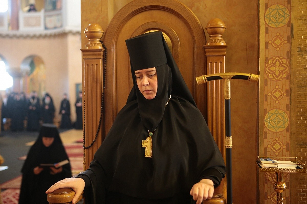 За богослужением молились: митрополит Святогорский Арсений, наместник Святогорской Успенской лавры, викарий Донецкой епархии Украинской Православной Церкви; настоятельница Воскресенского Новодевичьего монастыря игумения София (Силина) с сестрами, секретарь Комиссии Межсоборного присутствия Русской Православной Церкви по организации жизни монастырей и монашества; настоятельница Богородице-Рождественского ставропигиального женского монастыря Москвы игумения Викторина (Перминова), член Коллегии Синодального отдела по монастырям и монашеству; игумены и игумении монастырей Русской Православной Церкви и Поместных Церквей – участники круглого стола.