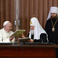 1. По воле Бога и Отца, от Которого исходит всякий дар, во имя Господа нашего Иисуса Христа, содействием Святого Духа Утешителя, мы, Франциск, Папа Римский, и Кирилл, Патриарх Московский и всея Руси, встретились ныне в Гаване. Мы воздаем благодарность в Троице славимому Богу за эту встречу, первую в истории.