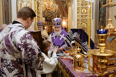 После сугубой ектении Предстоятель Русской Православной Церкви вознес молитву о мире на Украине.