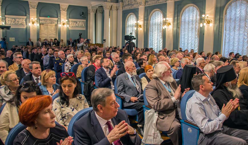 Затем слово было предоставлено председателю Оргкомитета конкурса, председателю Московского областного отделения ИППО, почетному члену Общества профессору Юрию Смирнову. Он поблагодарил за внимание к конкурсу, его постоянную поддержку председателя ИППО Сергея Степашина и сказал, что за пять лет лауреатами премий стало 297 человек и организаций, внесших большой вклад в укрепление нравственности, патриотизма в обществе, проявивших себя на ниве благотворительности и милосердия. Их деятельность, как и деятельность ИППО, основана на традиционных для нас нравственных ценностях и христианских идеалах.