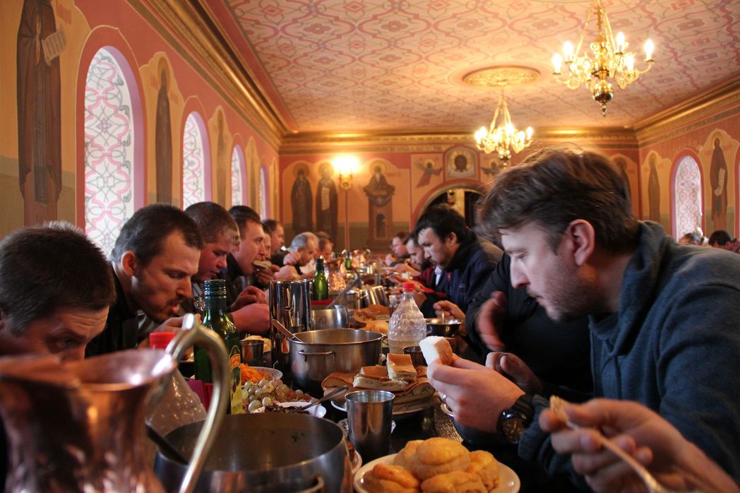 Братии в монастыре пока немного, 15 насельников. Но учитывая современное состояние человеческих душ, можно сказать, что труда во спасение этих 15 человек требуется, наверное, столько же, как сто лет назад его требовалось для спасения душ 150 человек. А послушания братии связаны с обеспечением текущей жизни и содержанием монастыря. Это богослужения, работа с паломниками, обслуживание и благоустройство нашей немалой территории, поварня, просфорня, огород, теплица, пасека с 80 ульями (которых в самом начале было лишь пять – пожертвованных нам уликов, а теперь их вот сколько, и медосбор стал любимым занятием для братии). К тому же в монастыре мы не используем наемный труд, а всё делаем сами.