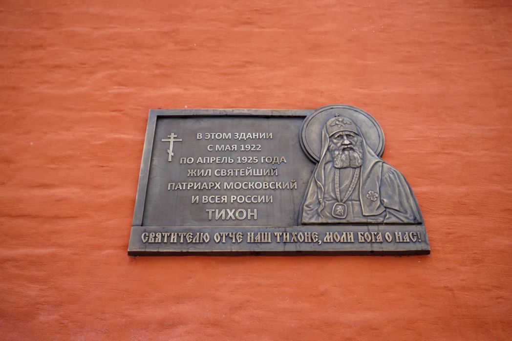 Это место знаковое! Раз в день арестованному «гражданину Беллавину» разрешалась одночасовая прогулка на свежем воздухе. Вот что об этом писала Мария Семенова (Вешнева): «За час до обеда, тепло одетый, выходит на стену. Прогуливается до башни и обратно. Мы за ним не выходим, наблюдаем из окна. К этому времени двор заполняется народом. Это верующие ожидают его благословения. Патриарх время от времени подходит к краю стены и молча благословляет крестным знамением. Многие опускаются на колени. Матери поднимают детей. Всё молча, разговаривать не положено». Также в своих воспоминаниях, чрезвычайно ценных для нас, сотрудница ГПУ Мария написала, чем простые люди старались поделиться с узником: «Чаще всего ему несут дары – самые разнообразные: дрова, рамку мёда, заштопанные носки, фунт свечей, мешок муки, две луковицы, штуки полотна и т.д., и т.п.».