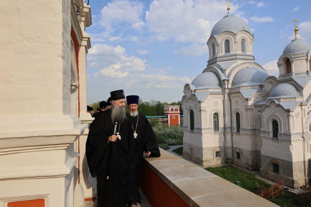 Да, братия помнит, как Святейший Патриарх Сербский Порфирий вознес молитву и поклонился мощам святителя Тихона, находящимся в Большом соборе монастыря, а затем проникновенно сказал: «Дай Бог, чтобы мы имели терпение, смирение и прежде всего любовь ко Господу и любовь между собой. Чтобы жили по заповедям Божиим, и Господь молитвами святого Тихона будет со всеми нами». После чего высокий гость из братской Сербии вместе с митрополитом Феогностом и сопровождающими лицами проследовал в келью-музей святителя. Как и Патриарх Кирилл, он тоже после осмотра кельи захотел посмотреть на примыкающую к ней паперть надвратной церкви Тихвинской иконы Божией Матери.