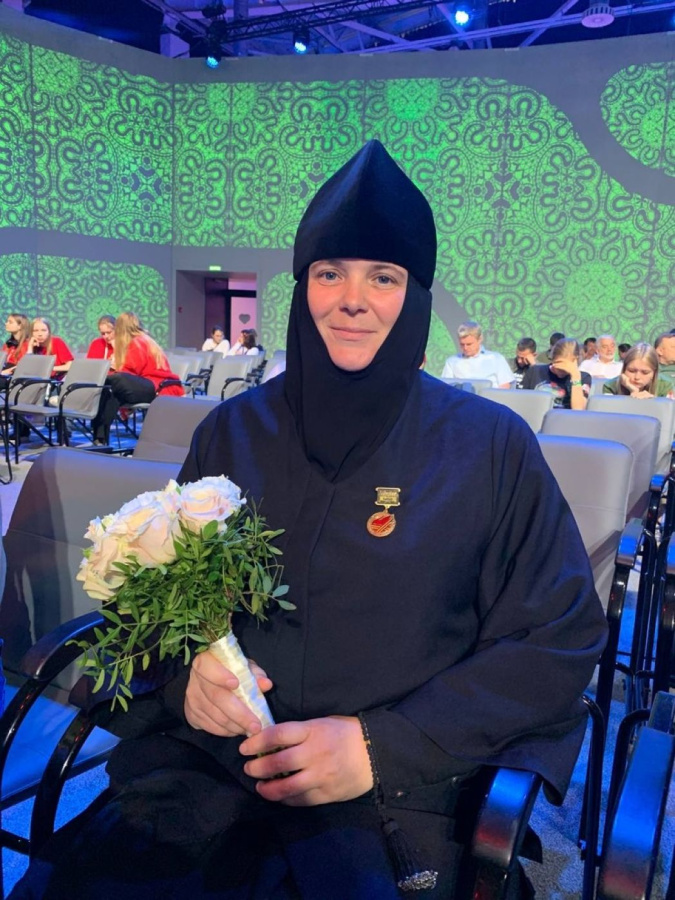 В июне прошлого года в номинации «Народные полки» мне вручили нагрудный знак Народного фронта «Всё для Победы». Награждение проходило на выставке «Россия» на ВДНХ, в моей жизни это была первая награда. Честно говоря, неожиданная для меня. Во время торжественной церемонии я пережила очень сильные эмоции, потому что увидела множество народа, для которого волонтерская деятельность стала неотъемлемой частью жизни. Эти люди служат России! К глаголу «служат» добавлю определение «беззаветно». В который раз – теперь на площадке ВДНХ – я убедилась, что Россию не победить. А свою награду восприняла, как награду деткам нашей воскресной школы, матушке-настоятельнице Екатерине, нашим сестрам и прихожанам. И это не просто слова, а истинное мое ощущение, поскольку я четко осознаю, что представляю большой-большой-большой коллектив. Иногда я слышу от матушки: «Пойди надень медальку. Ее важно видеть нашим детям». Я надевала нагрудный знак на День Победы, на встречу с молодежью – выпускниками монастырской воскресной школы. Когда мы ездили в зону СВО, тоже надевала. «Она не должна лежать у тебя в шкатулочке», – говорит матушка.