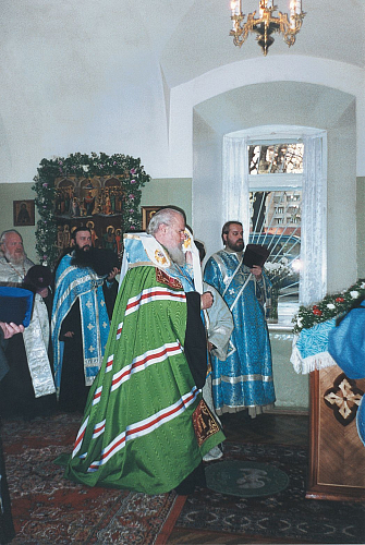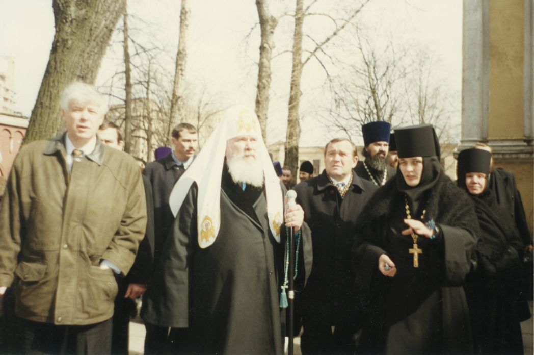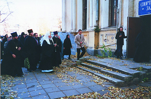 Этот приезд Патриарха стал очень важным для нашей обители. За месяц до этого, в сентябре 1996 года, московские власти выпустили Постановление о передаче всех зданий и земли монастырю. Но фактически ничего не изменилось – арендаторы никак не уходили. Патриарх знал об этом, и поэтому он заехал в монастырь перед всенощной 13 октября 1996 года и отслужил молебен Покрову Матери Божией.