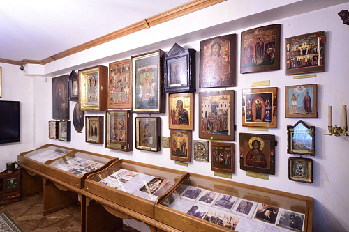 Часть экспозиции музея, посвященную истории Покровского монастыря, составляют старинные иконы, кресты и другие предметы храмового убранства, найденные при реставрации обители и ее подворий, фотографии Покровского монастыря и его последних насельников до революции.
