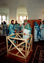 1 октября 1995 года нам наконец выдали ключи от первого (цокольного) этажа Покровского храма. Не было самого необходимого, спали на полу.