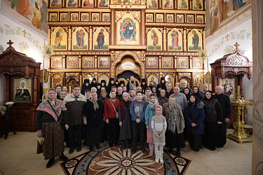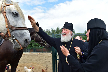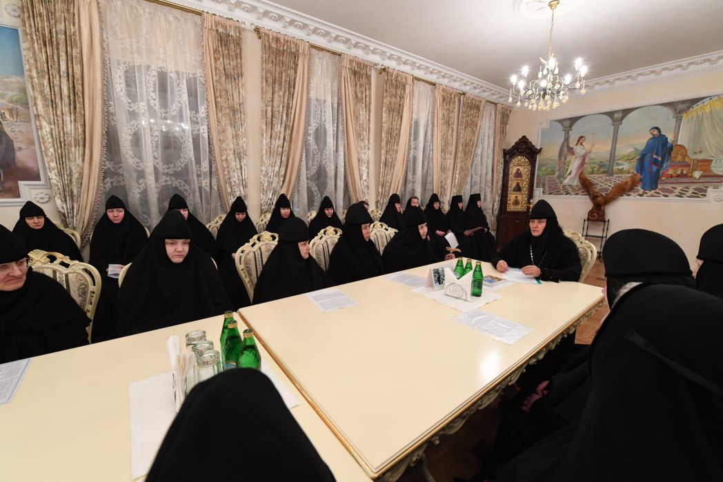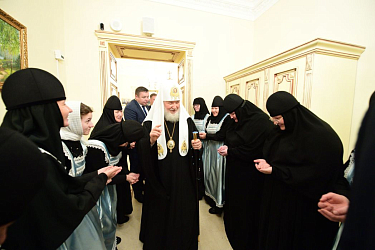 Святейший Владыка со знанием дела интересуется, как идут дела в монастыре и на подворьях, дает мудрые советы, с любовью благословляет каждую сестру, говорит поучительные для всех насельниц слова за общей трапезой.