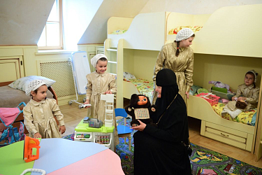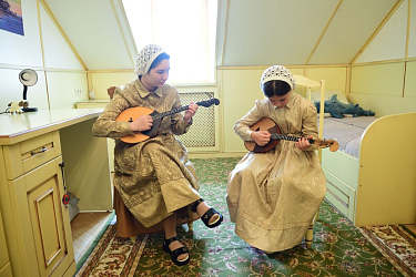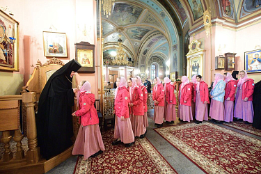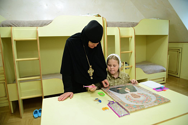 Вскоре после этого в монастырь стали привозить первых воспитанниц. Приютские дети очень сложные, к ним нужен особый подход, внимание и любовь. Нужно постоянно с ними заниматься, но другого пути у меня нет. Так благословляет Господь. Мы даем всем детям одинаковое воспитание и образование в духе православной традиции. Каждый день в приюте начинается и заканчивается общей молитвой, дети молятся до и после еды, бывают в храме на службе, где сами поют, читают; регулярно исповедуются, причащаются. Учатся в православной гимназии, там им преподают Закон Божий, литургику. Они получают музыкальное образование: занимаются вокалом, играют на музыкальных инструментах, готовят выступления к праздникам обители. Также выступают на фестивалях в концертном зале Зарядье.
