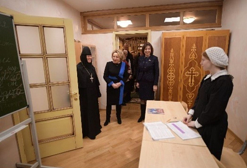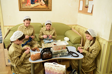 Поскольку классы у нас небольшие, то обучение почти индивидуальное. На уроках труда девочки овладевают навыками кройки и шитья, учатся готовить, вести хозяйство. В монастыре несут посильные послушания – в трапезной накрывают и убирают за собой столы, в храме церковничают.