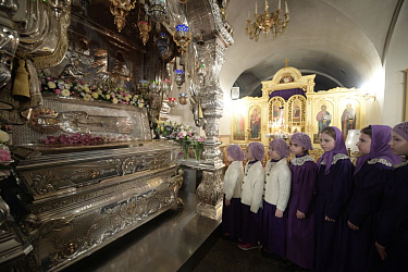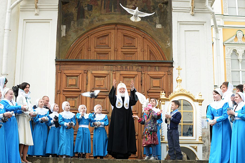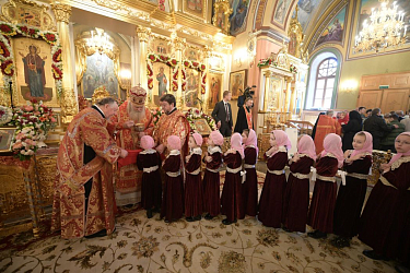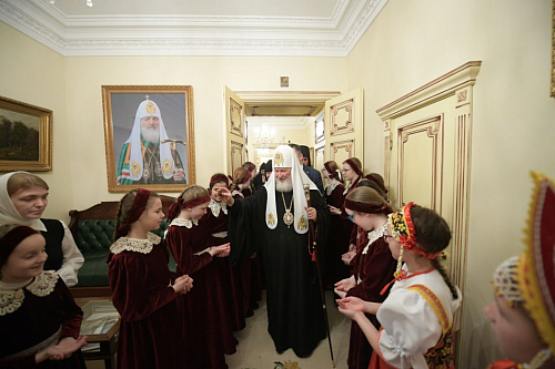 Святейший Патриарх Кирилл, бывая в монастыре, всегда интересуется жизнью приюта, с любовью благословляя всех воспитанниц.Они часто посещают Патриаршие богослужения в соборах Кремля и Храме Христа Спасителя.