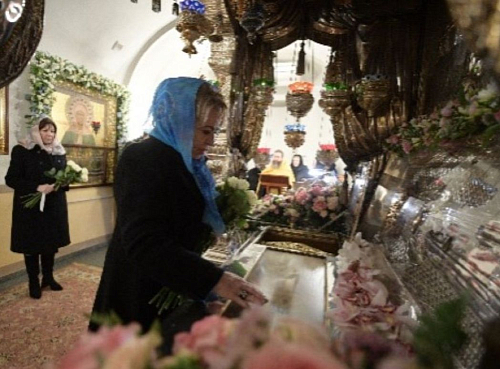 У мощей святой Матроны Его Святейшество обратился с приветственной речью к сестрам и многочисленным паломникам, сообщив, что блаженная Матрона Московская с недавнего времени очень почитается в Индии.