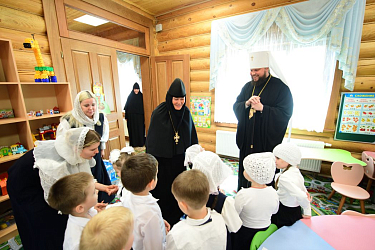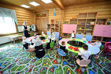В прошлом году на подворье открыли православный детский сад на 40 детей. Сюда тоже принимаем ребят из малообеспеченных и многодетных семей.
