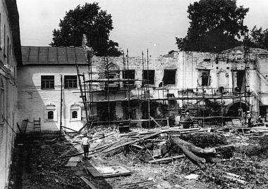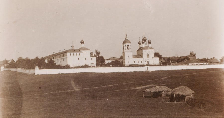 Вид-то он, в общем, сохранил, реставрация конца 1980-х годов оставила его в достаточно хорошем состоянии. Основной корпус под крышей, отопление центральное, советское еще, угольное. Территория, хоть и не полностью, но огорожена. Посредине деревянная звонница, на ней несколько колоколов. Один действующий храм – Спасский. Никольский стоял тогда без пола, без отопления, с треснувшими стеклами в окошках, готовился к ремонту. Успенский собор... К нему даже не прикасались. Без окон, без дверей. Только птиц гурьба.