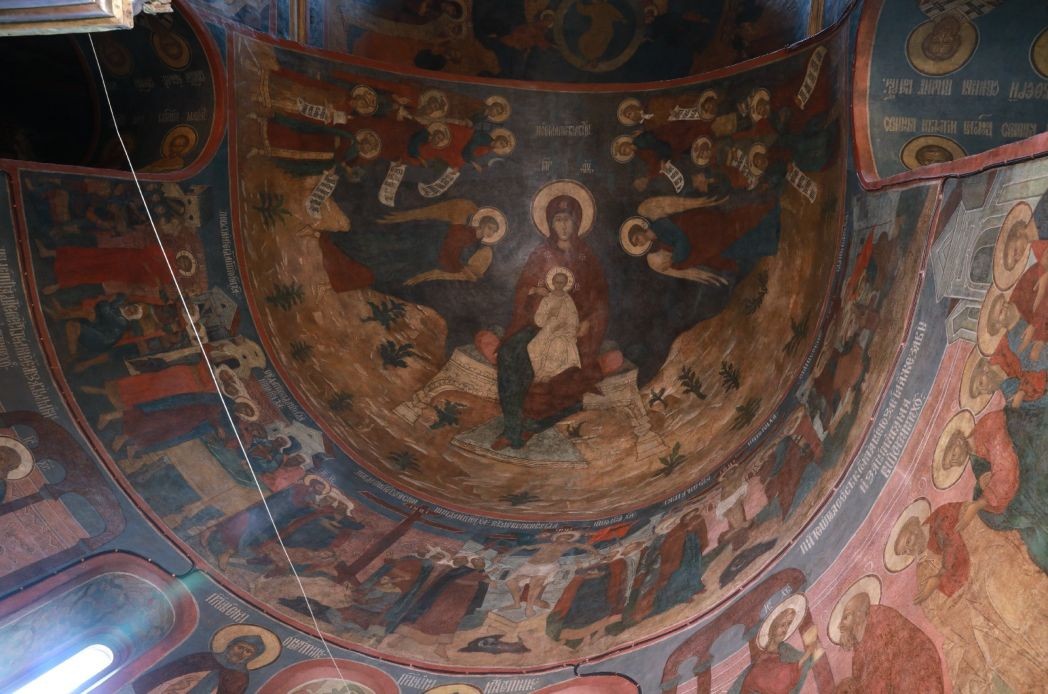 Когда мы находимся в древнем храме, на нас не давит большое количество фресок. Всё потому, что в древних произведениях очень правильно расставлены акценты: есть знаковые композиции, есть второстепенные, всё найдено по композиции, цветовому решению. Сейчас говорят – зачем ковровая роспись? Нужно учитывать то, что существует найденное решение, которое проверено веками, начиная с раннехристианских росписей катакомб. Святитель Григорий Нисский говорил, что Бог по природе своей – художник. А какой он художник? Он не скупой. Храм – это наш дар Богу. Как мы подадим его? Скупо ли? Разве мы этого хотим? Не обязательно в храме нужно одновременно смотреть на все росписи. Но бывает, например, момент, когда луч солнца попадает на какую-то композицию, и кто-то ее разглядел, и его это поразило и затронуло душу.