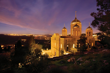 К счастью, нет. Если брать по порядку: с арабами у нас прекрасные отношения. Большинство арабов исповедует ислам, но есть также арабы крещеные, православные. Некоторые из них трудятся в Горненском монастыре, помогают нам, потому что территория монастыря большая, на ней находятся домики, в которых живут сестры. (Один, второй, третий, четвертый – все выше и выше по склону). Также на самом верху у нас идут службы в главном монастырском соборе. Его строительство началось еще в прошлом веке, в 1911 году, однако в 1914 году прервалось в связи с началом Первой мировой войны. Работы возобновились лишь в 2003 году, и вот 12 ноября 2012 года Святейший Патриарх Московский и всея Руси Кирилл во время своего официального визита в Иерусалимский Патриархат прибыл в Горненский монастырь и совершил освящение престола собора в честь Всех святых, в земле Российской просиявших. Сколько лет этот собор без служб простоял?! А теперь такая радость для всех, такое счастье! Раньше мы служили в нижнем храме в честь Казанской иконы Божией Матери. Там тесновато стало, поскольку паломников приезжает много, как и обещал нам Святейший Патриарх Алексий II. И вот теперь наверх поднимаемся…