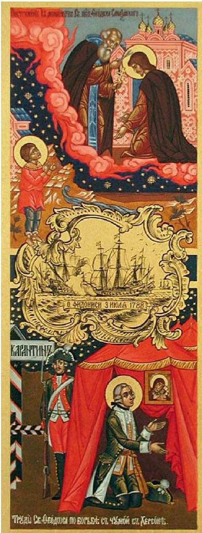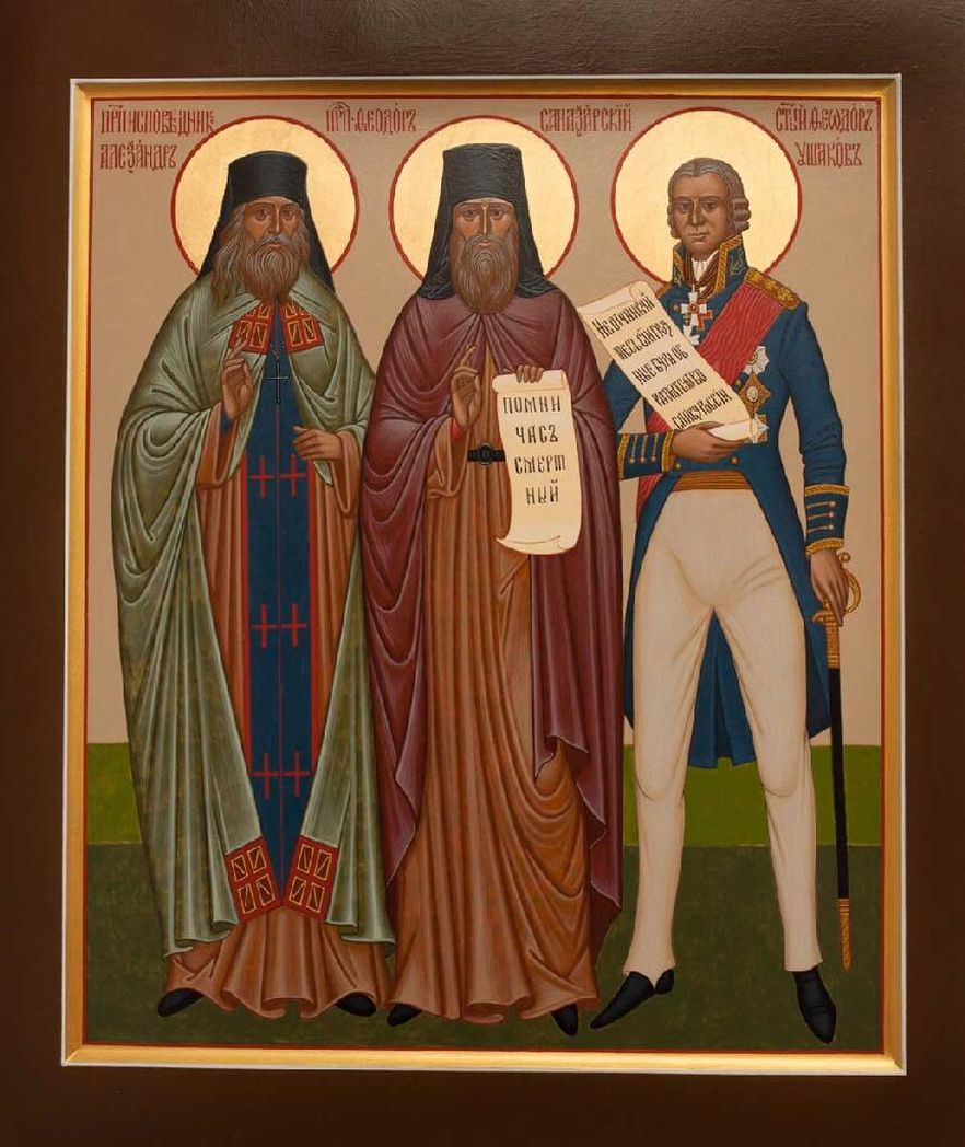 Покровительница наша – Пресвятая Богородица, в честь Рождества Которой именуется наш монастырь. Каждый из санаксарских святых имел особое отношение к Божией Матери. О первоначальнике игумене Феодосии осталось мало сведений, к тому же он ездил с духовной миссией на Восток. Возобновителя монашеской жизни преподобного Феодора мы почитаем как основателя и небесного покровителя монастыря (после Богородицы). Воин Феодор Ушаков, племянник преподобного, стал единственным в мире прославленным Церковью адмиралом и флотоводцем. И он теперь покровитель всех моряков.