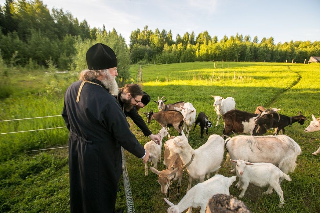 Я благодарю Бога за нашего духовного наставника и за братию. Братии у нас десять человек. Они приехали кто откуда: из Москвы и Центральной части России, из Белоруссии и Украины, но любовь к этому месту, к святителю Димитрию настолько прочно поселилась в их сердцах, настолько они самоотверженно трудятся в крае с тяжелыми климатическими условиями, где лето короткое, а зима длинная, что чувство благодарности переполняет меня при мысли об этих замечательных людях. Вместе мы участвуем в Божественных литургиях, причащаемся из одной Чаши Кровью Христа и Телом Христовым (а ведь нет на земле ничего важнее, как совершение Божественной литургии). К нашим печалям я бы отнес то обстоятельство, что Литургии в монастыре совершаются не каждый день из-за определенных сложностей, связанных с хором. Но недавно Господь нам послал монашествующего, который может управлять хором, и, слава Богу, службы стали проводиться чаще. У нас есть два иеромонаха, один иеродиакон, монахи, иноки, послушники. Вместе с ними я не перестаю радоваться каждому новому прихожанину. Мы стараемся окружить приезжающих к нам на службы людей вниманием и заботой. Сколько же радости у братии было, когда на Рождественской службе в нашем маленьком храме (шла первая Рождественская служба в истории монастыря) собралось 120 человек! На воскресные службы собирается до 40 мирян. Также у монастыря есть подворье в деревне Ярки, где недавно всем миром был построен новый храм в честь первоверховных апостолов Петра и Павла, который мы окормляем. Братия выполняет самые разные послушания. Много трудов, забот, хлопот на монастырском подсобном хозяйстве, включающем в себя огород, теплицы, всякую живность – коз, гусей, кур. Недавно стали варить сыр. Потихоньку осваиваем эту науку.