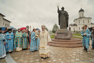 Памятник Великому Московскому князю Ивану III привезли из Санкт-Петербурга сюда в прошлом месяце, 12 июня. Вначале мы посчитали чистым совпадением то, что прибыл он к нам именно в тот день, когда в стране празднуется День России. Но потом увидели в этом глубокий смысл. И когда бронзовый монумент встал здесь, с южной стороны у входа в монастырский скит, у меня появилось чувство, что он совершенно одушевлен. Эта одушевленность меня просто потрясла! Безусловно, огромную роль в таком восприятии сыграло мастерство скульптора. Кроме того, были некоторые моменты во время изготовления памятника, когда я поняла, что Иван Великий стал участвовать в нашей жизни. Причем в очень личных вопросах. И теперь я думаю: он не прославлен Церковью как святой, но, с другой стороны, видимо, на каких-то драматических этапах истории он сделал очень серьезные и правильные шаги (полагаю, это касалось послушания Церкви), и у Господа он прославлен. А нам Господь судил прославлять Собирателя земли Русской спустя пять с лишним веков.