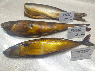 Мы продаем молочную продукцию: молоко обычное и топленое, масло сливочное (тоже обычное и топленое), творог, сметану, сыры нескольких видов. А еще иногда – копченую рыбу. Покупаем сырую горбушу, терпуг, скумбрию – чистим и коптим. Делаем это обычно большой партией к праздникам. Раньше подавали рыбный деликатес только на праздничный стол, но тут люди стали говорить: «Так пахнет вкусно! А почему только для себя делаете? Продайте, пожалуйста, нам рыбку копченую!» Вот так всё началось.