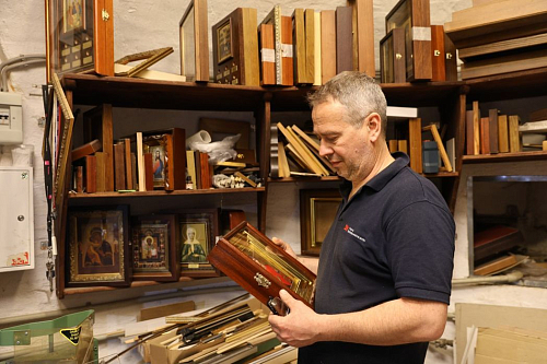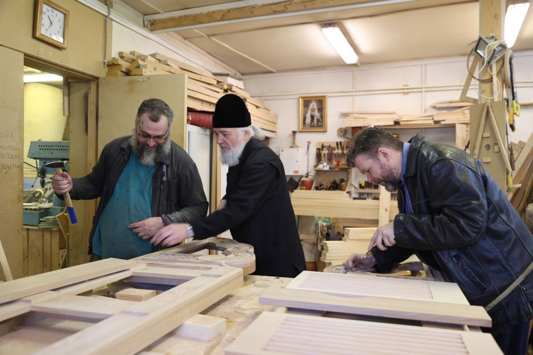 Начну с главного. Прежде всего мастерские создавались для обеспечения внутренних нужд. Приведу пример с нашей переплетной мастерской, загруженной круглый год: в ней мастера своего дела занимаются реставрацией переплета Евангелия, Апостола, Требника, Канонника и других богослужебных книг, чинят уже рассыпающиеся книги. Нужна в монастыре такая мастерская? Несомненно. Как и реставрационная мастерская. Ведь в храмах происходит каждение, в храмах горят свечи, и необходимо постоянно поновлять живопись. А раз в пятнадцать лет мы ставим леса, всё промываем, устраняем эти естественные загрязнения. Далее: когда нам, допустим, нужны богослужебные сосуды, когда их не хватает, тоже сами изготавливаем и именно такие, какие нам нужны. Этим занимается ювелирная мастерская. Я пришел в монастырь в 1997 году, тогда у обители был один скит в Рязанской области, второй – в селе Долматово Московской области. Потом еще скиты появились в Подмосковье – близ Рузы и в Серпуховском районе, и в них тоже нуждаются как в церковной утвари и всяких предметах, связанных с церковным обиходом, так и в новых иконах, написанием которых занимается наша иконописная мастерская. Или еще пример: Святейший Патриарх подарил Данилову монастырю икону, надо под нее сделать киот. И зачем, скажите, кому-то на стороне его заказывать, если эту работу превосходно выполнят свои мастера? У нас есть столярная мастерская, есть багетная мастерская. Также осуществляется реставрация мебели и реставрация икон. Словом, что-то создаем заново, что-то ремонтируем.